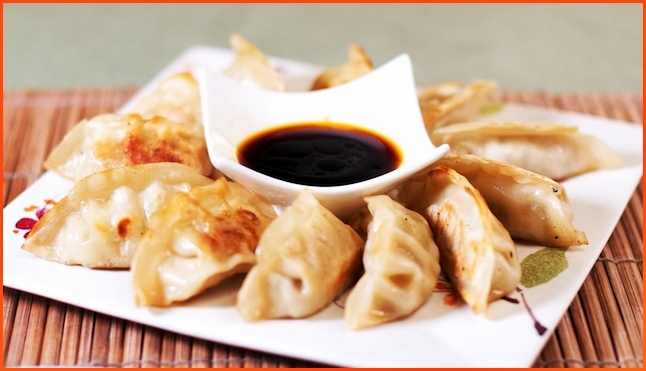 Pan Fried Thai Style Chive Dumpling, Served with Sweet & Sour Black Bean Sauce.